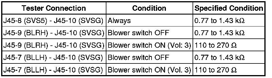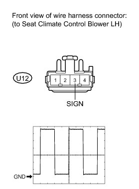 (1) Connect the oscilloscope to terminal 3 and body ground with the climate control blower LH connector still connected.
