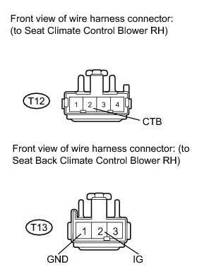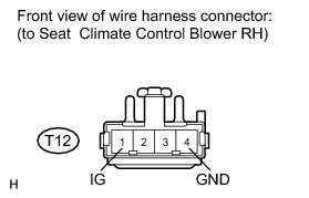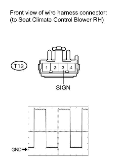 (1) Connect the oscilloscope to terminal 3 and body ground with the climate control blower RH connector still connected.