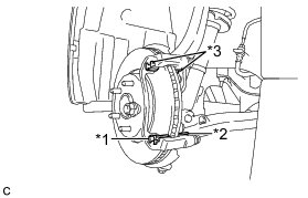 (1) Remove the front No. 1 disc brake pad support plate and front No. 2 disc brake pad support plate from the front disc brake cylinder mounting.