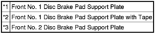 Each front disc brake pad support plate has a different shape. Be sure to put an identification mark on each front disc brake pad support plate so that they can be installed to their original position.