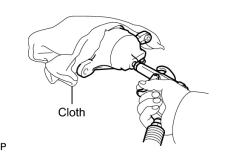 (a) Place a piece of cloth between the piston and the disc brake cylinder assembly.