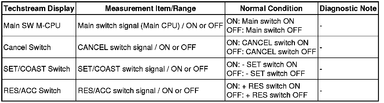 CRUISE CONTROL: DYNAMIC RADAR CRUISE CONTROL SYSTEM: Cruise Control Switch Circuit