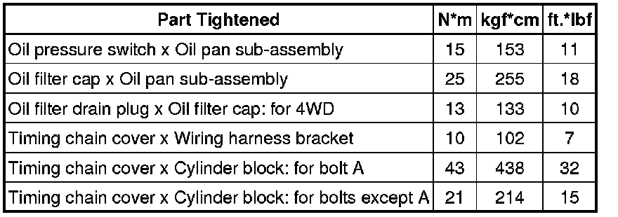 SERVICE SPECIFICATIONS: 4GR-FSE LUBRICATION: TORQUE SPECIFICATIONS