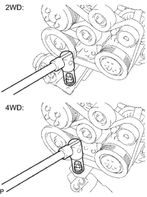 (a) Temporarily install the V-ribbed belt tensioner with the 5 bolts.(2WD)