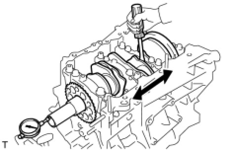 (b) Using a dial indicator, measure the thrust clearance while prying the crankshaft back and forth with a screwdriver.