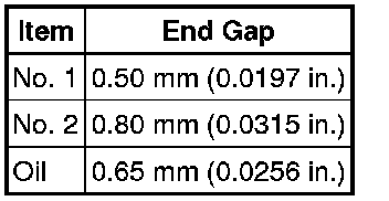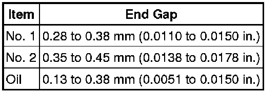 (d) If the end gap is greater than the maximum, replace the piston ring. If the end gap is greater than the maximum even with a new piston ring, rebore all the 6 cylinders or replace the cylinder block.