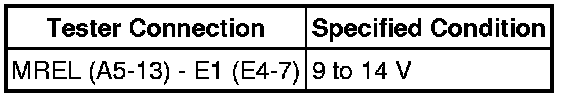 When the engine switch is turned on (IG), the battery voltage is applied to terminal IGSW of the ECM. The ECM MREL output signal causes a current to flow to the coil, closing the contacts of the EFI MAIN relay and supplying power to terminal +B and +B1 of the ECM.