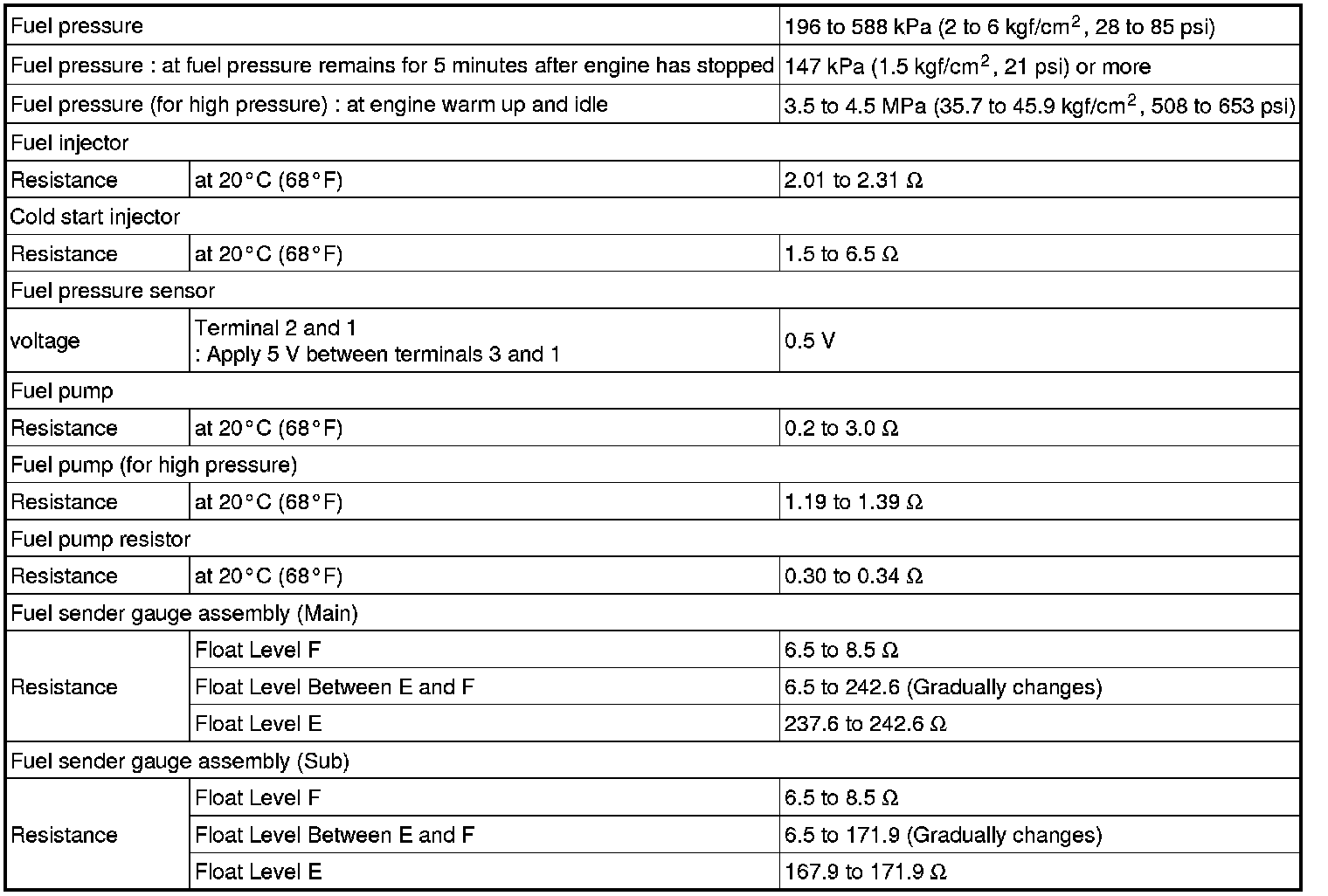 SERVICE SPECIFICATIONS: 4GR-FSE FUEL: SERVICE DATA