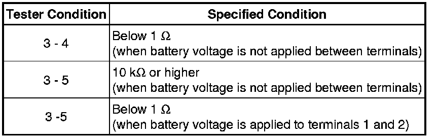 If the result is not as specified, replace the relay.