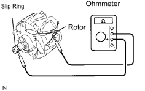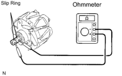 (1) Using an ohmmeter, measure the resistance between the slip ring and rotor.