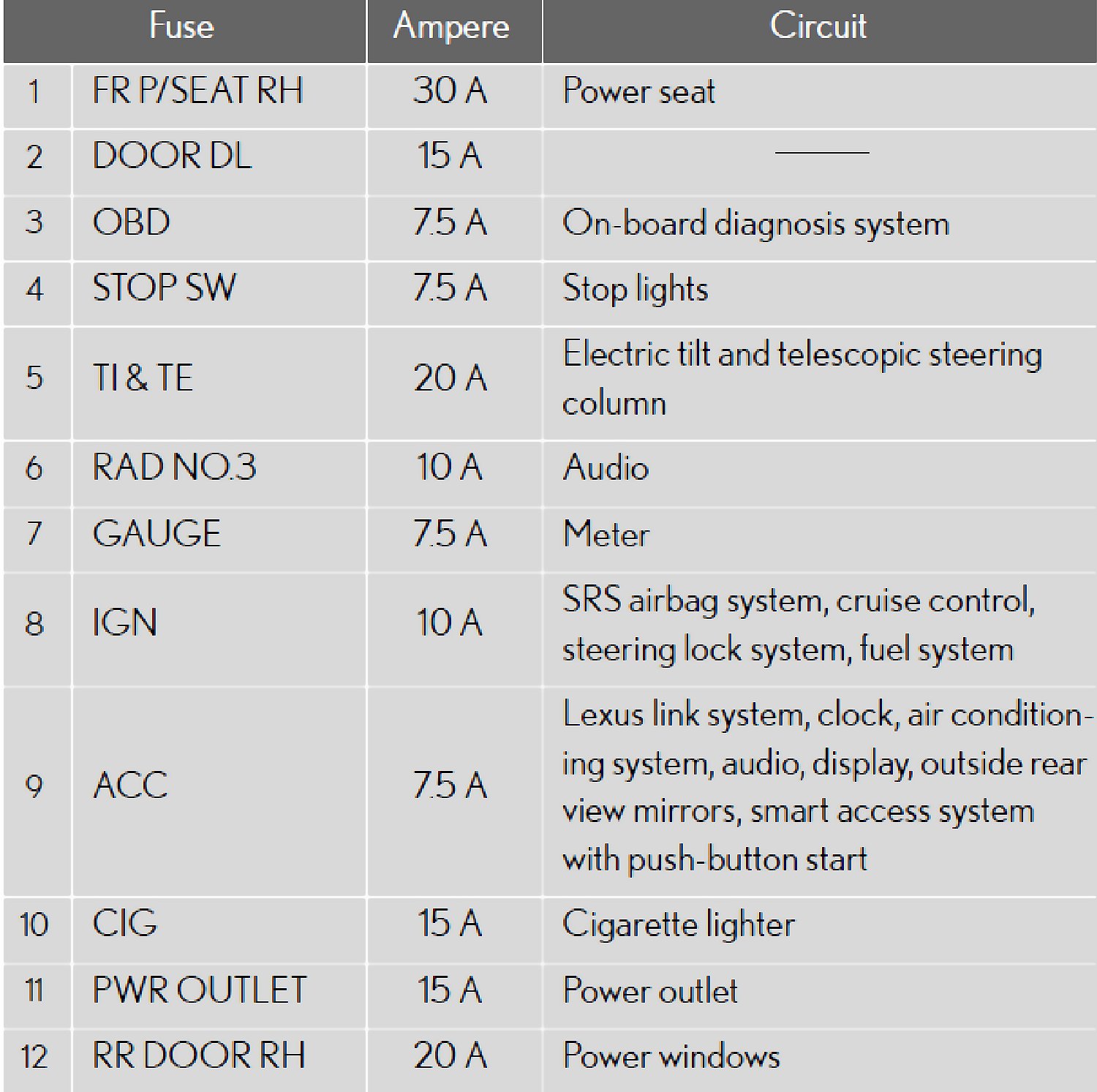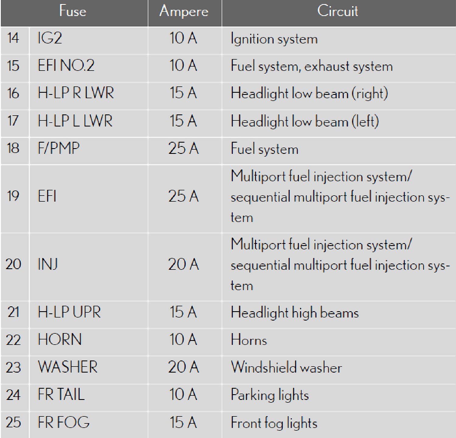 Fuse Location - Passenger's Side Instrument Panel: