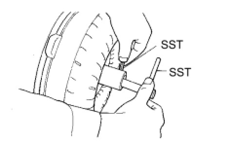 (1) Install SST so that it fits in a notch of the converter hub and a notch of the outer race of the one-way clutch.
