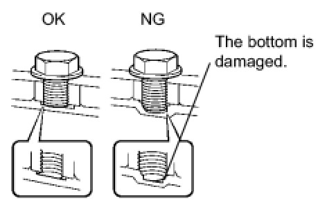 (1) When there is any damage to the end of the bolt for the torque converter clutch and to the bottom of the bolt hole, replace the bolt and the torque converter clutch.