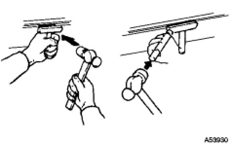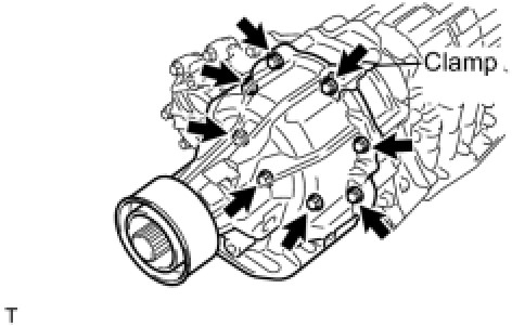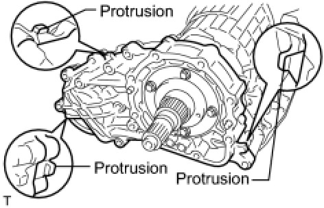 (b) Tap the 3 protrusions of the transfer chain case gently with a brass bar and hammer to loosen, and remove it.