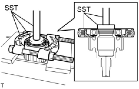(a) Place SST on the center differential clutch pressure balancer, and compress the return spring with a press.