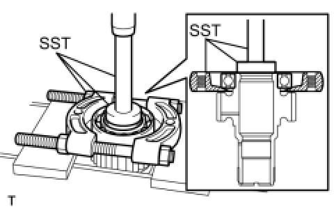 (a) Using SST and a press, remove the transfer drive sprocket bearing from the transfer drive sprocket.