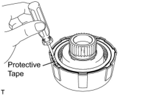 (b) Using a screwdriver with its tip taped, install the snap ring to the transfer direct clutch drum.