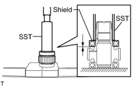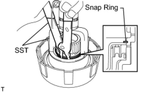 (c) Place SST on the center differential clutch pressure balancer, and compress the return spring with a press.