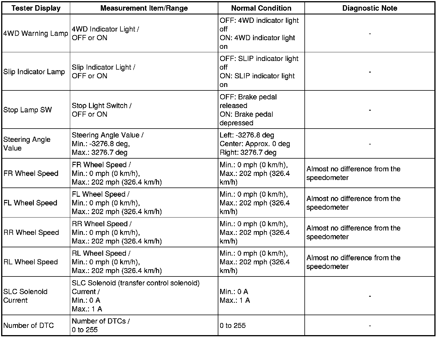 1. DATA LIST OF 4WD CONTROL ECU