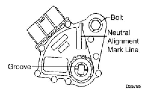 (g) Align the neutral alignment mark line with the switch groove, and tighten the adjusting bolt.