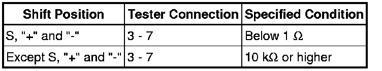 (d) If the resistance value is not as specified, replace the transmission control switch.