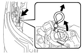 (b) Hold the luggage compartment door by the luggage compartment door hinge and move it to the position shown in the illustration.