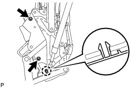 (c) Using a "TORX" socket wrench, remove the 2 bolts and No. 2 package tray trim hinge.