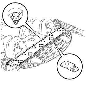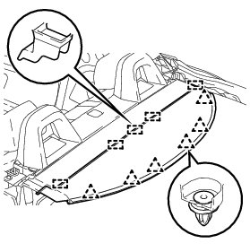 (b) Slide the package tray trim cover toward the front of the vehicle and disengage the 5 guides to remove the package tray trim cover.