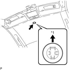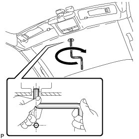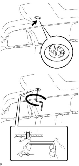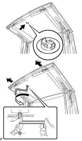 (c) Insert a 5 mm hexagon wrench into the sliding roof drive gear shaft (lock motor shaft) through the hole in the roof headlining.