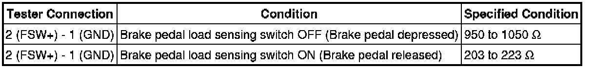 (d) If the value is not as specified, replace the brake pedal load sensing switch.