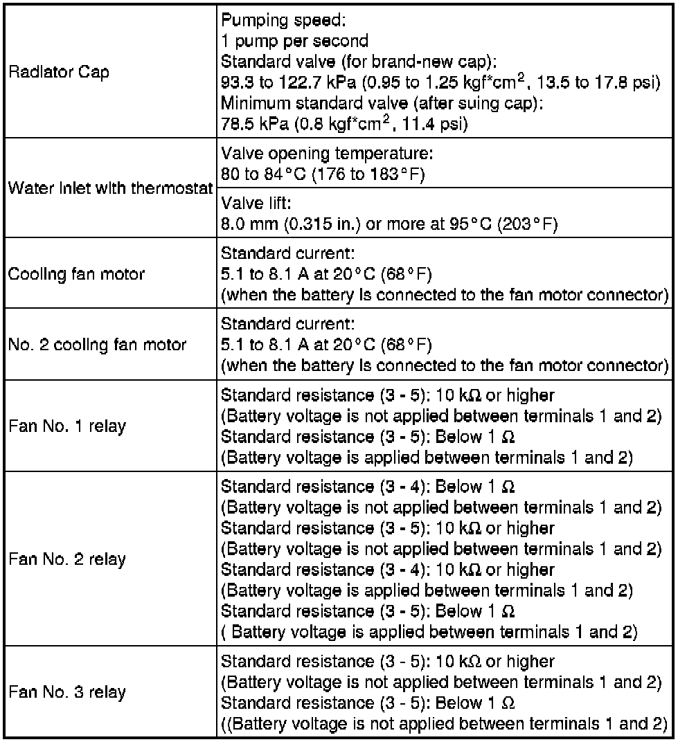 SPECIFICATIONS: 4GR-FSE COOLING: SERVICE DATA