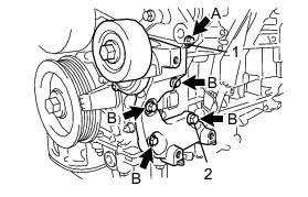 (b) Install the V-ribbed belt tensioner by tightening the bolt 1 and bolt 2 in the order shown in the illustration.