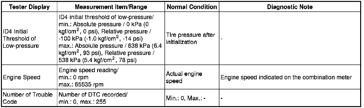 TIRE PRESSURE MONITORING: TIRE PRESSURE WARNING SYSTEM: DATA LIST / ACTIVE TEST
