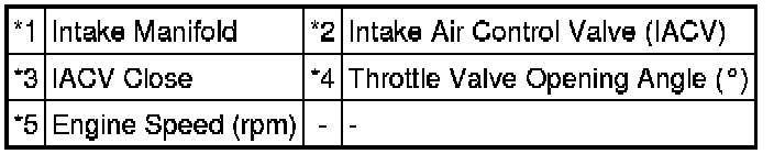 When the Intake Air Control Valve (IACV) opens and closes, the Acoustic Control Induction System (ACIS) control circuit causes the engine load intake efficiency to increase. When the engine is running at 2200 to 4300 rpm and the throttle valve opening angle is 30° or more, current flows through the ACIS control circuit and the intake air control valve closes. For all other situations, current does not flow through the ECM and the intake air control valve is open.