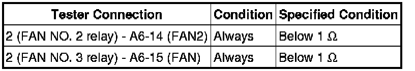 NG -- REPAIR OR REPLACE HARNESS OR CONNECTOR (NO. 2 COOLING FAN MOTOR - FAN NO. 2 OR NO. 3 RELAY)