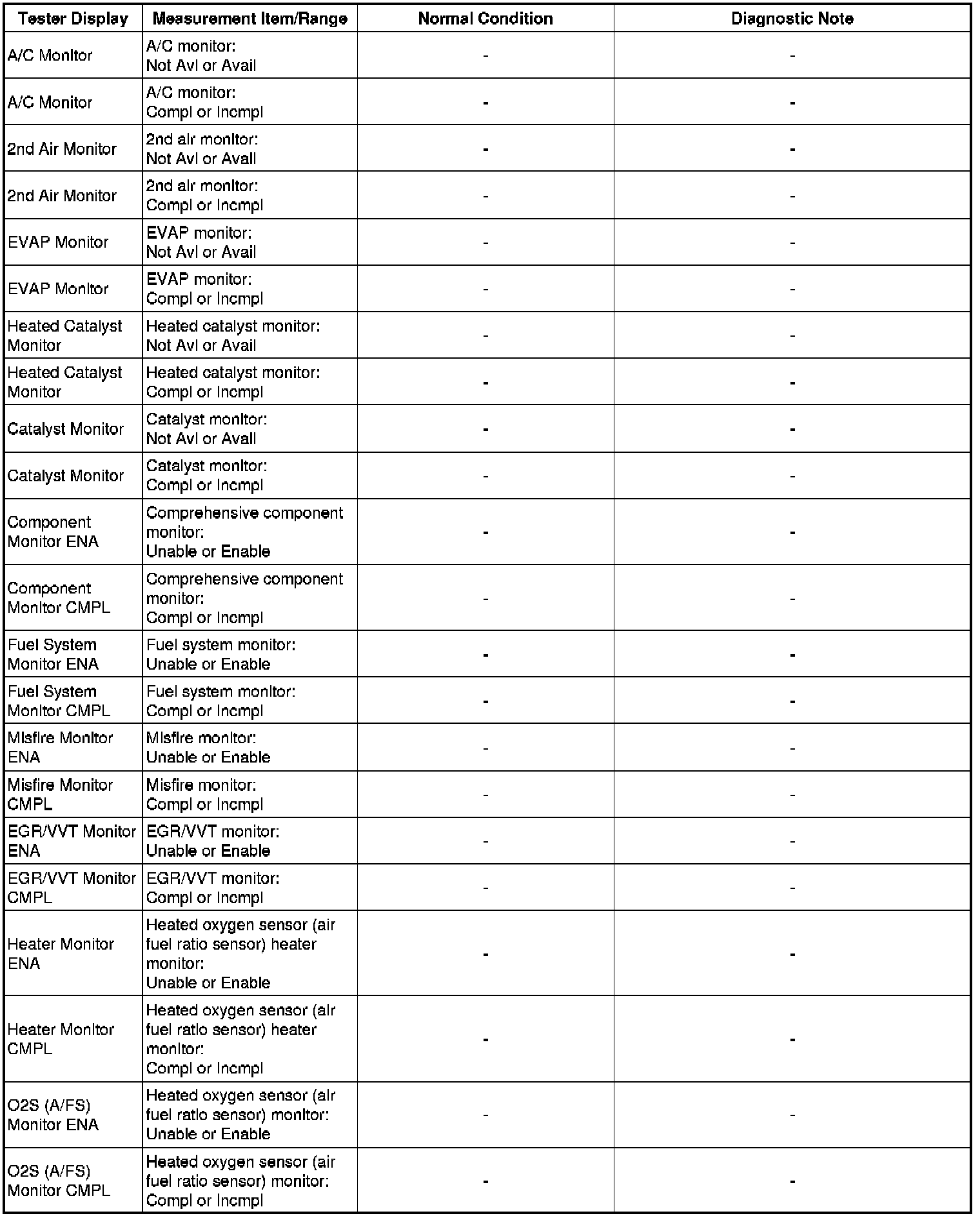 * Normal condition: If no idling conditions are specified, the shift lever should be in N or P, and the A/C switch and all accessory switches should be off.
