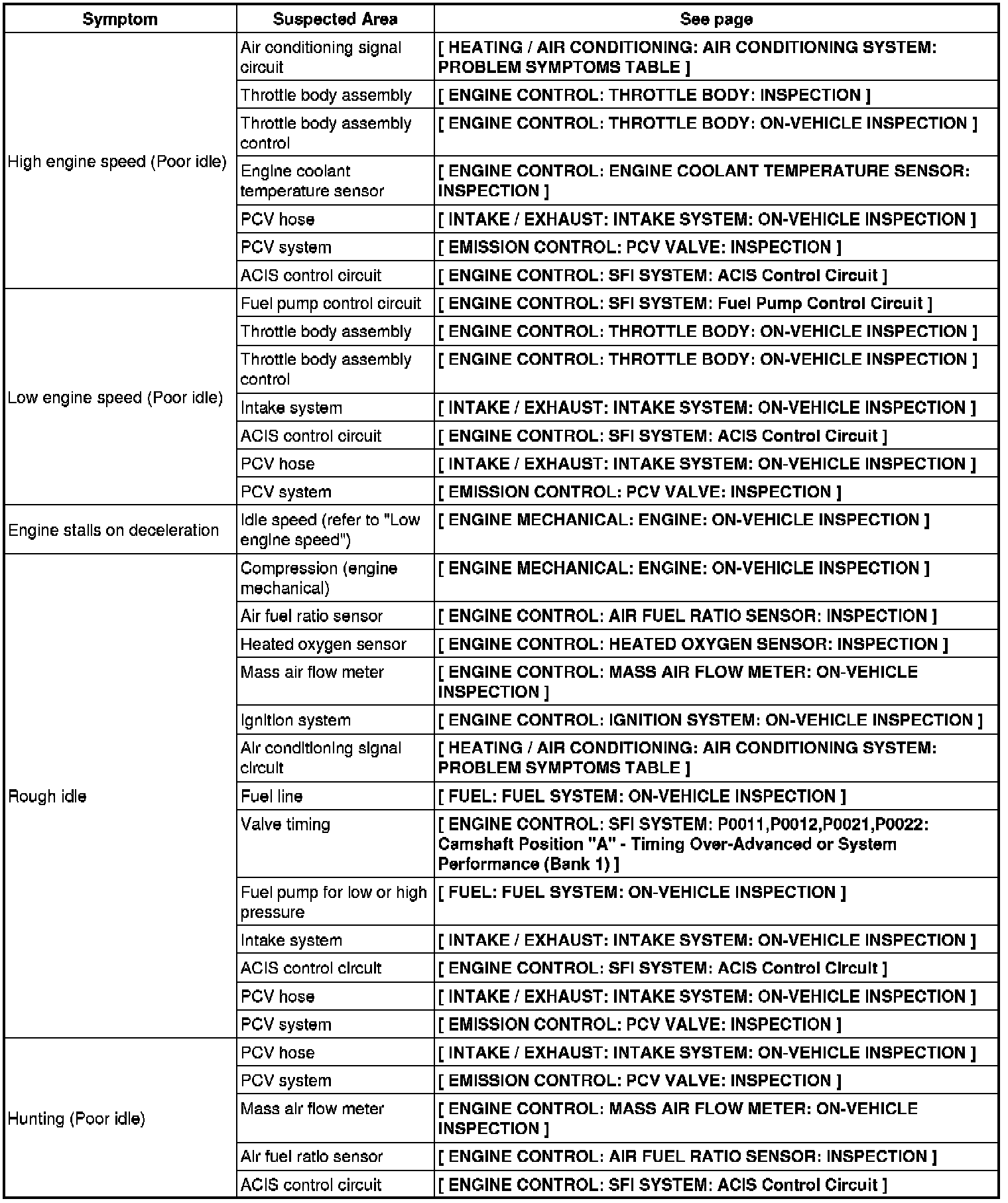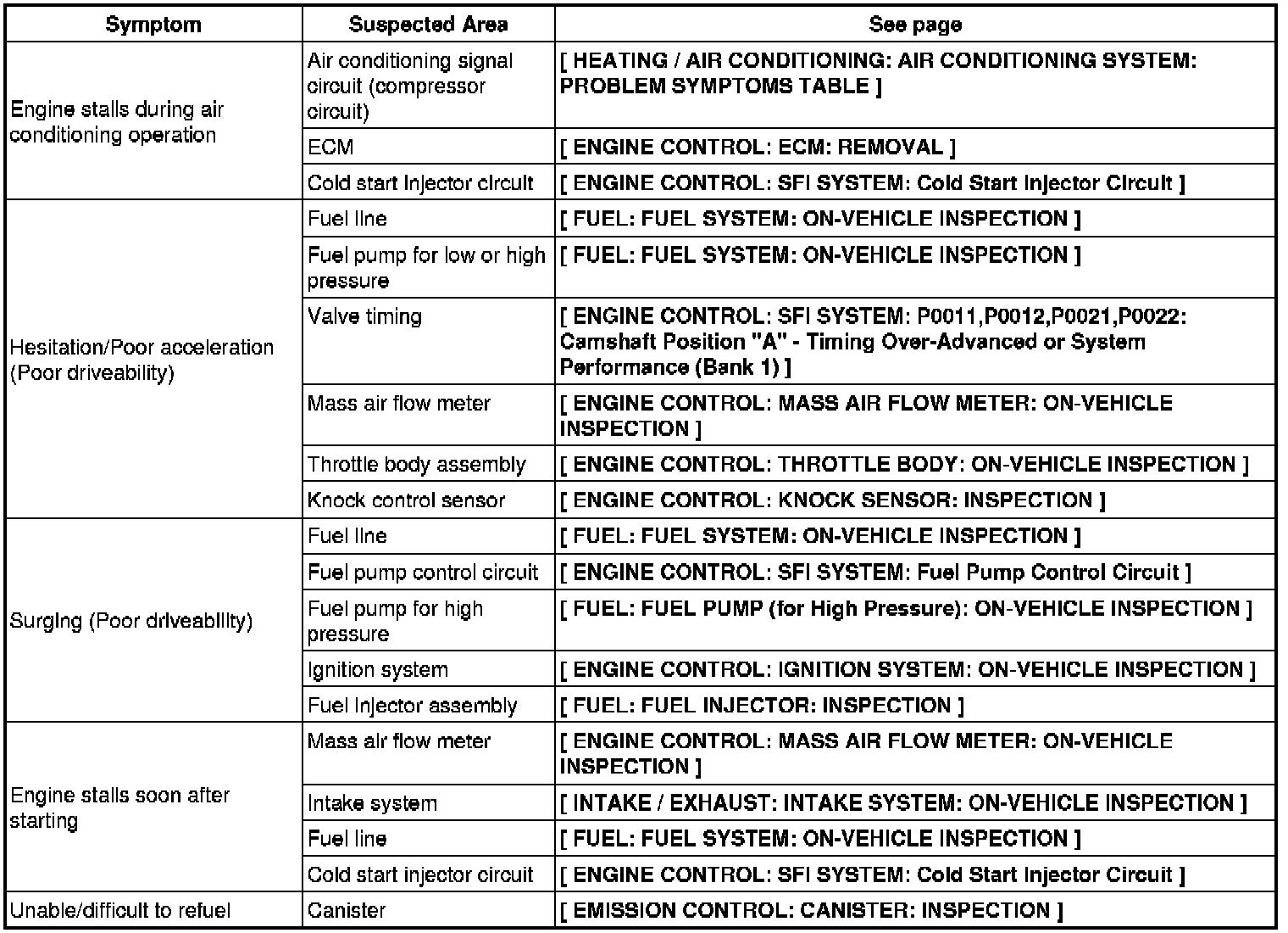 4GR-FSE ENGINE CONTROL: SFI SYSTEM: PROBLEM SYMPTOMS TABLE