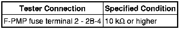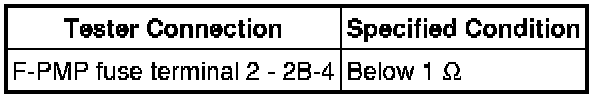 (1) Remove the F/PMP fuse. Using an ohmmeter, measure the resistance between the terminals.