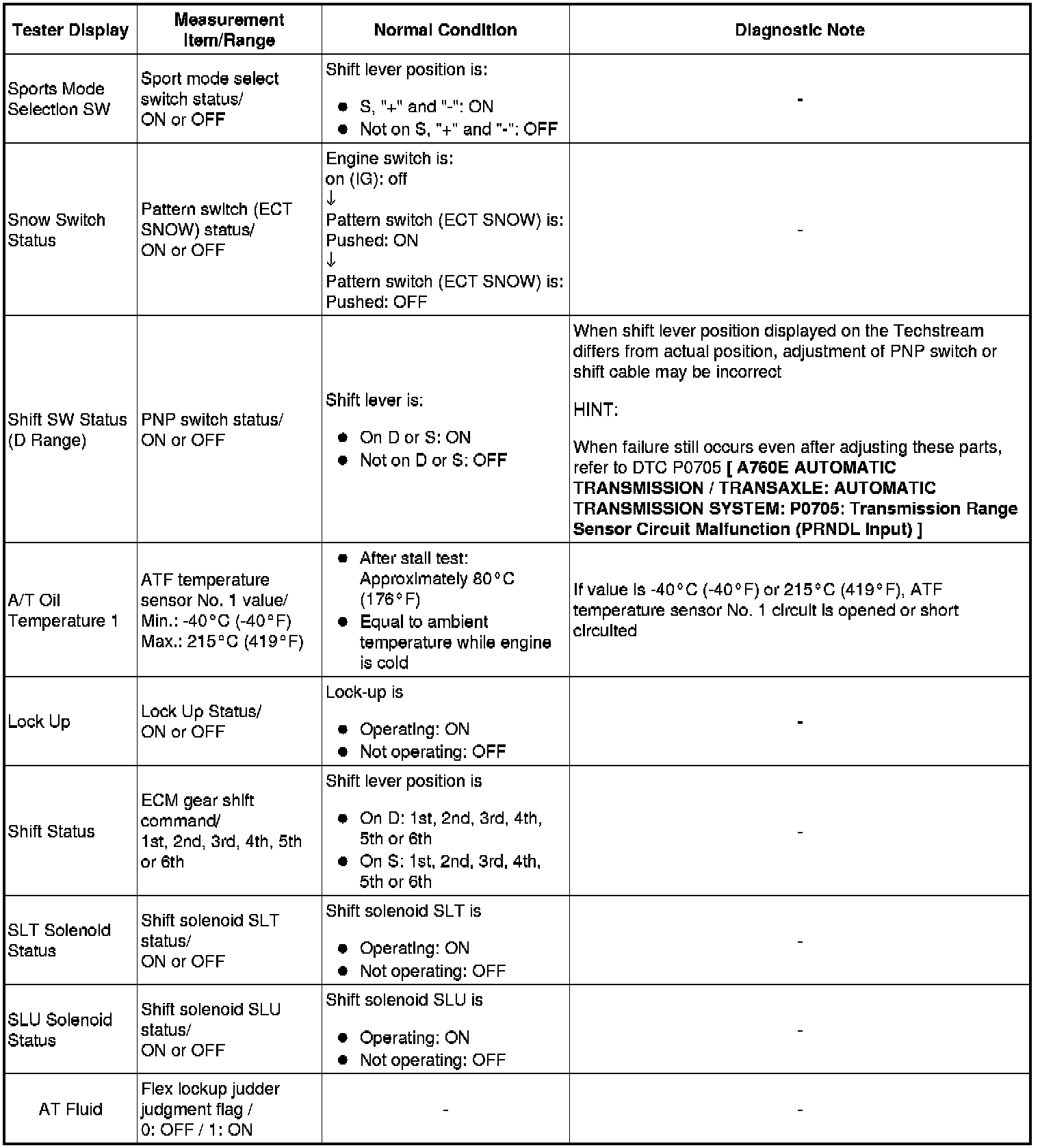 A760E AUTOMATIC TRANSMISSION / TRANSAXLE: AUTOMATIC TRANSMISSION SYSTEM: DATA LIST / ACTIVE TEST