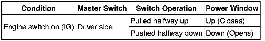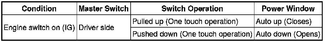 (a) Check that the front passenger door and quarter power windows operate as follows: