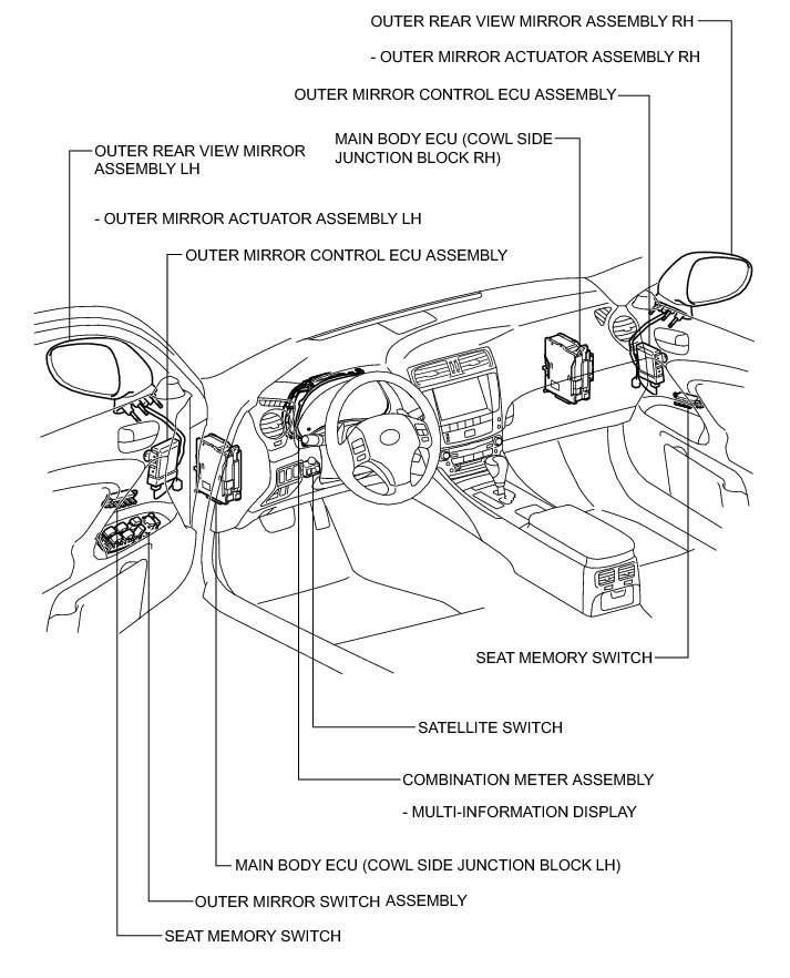 MIRROR: POWER MIRROR CONTROL SYSTEM (w/ Memory): PARTS LOCATION