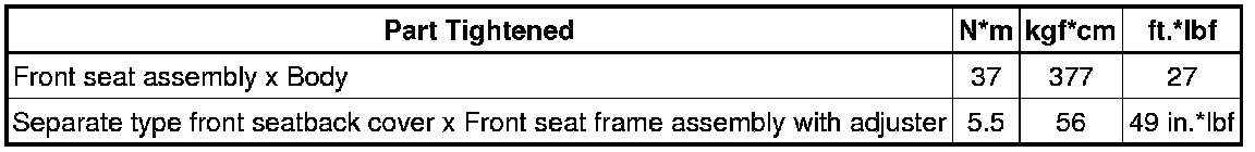 SERVICE SPECIFICATIONS: SEAT: TORQUE SPECIFICATIONS