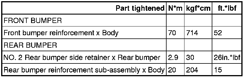 SERVICE SPECIFICATIONS: EXTERIOR: TORQUE SPECIFICATIONS
