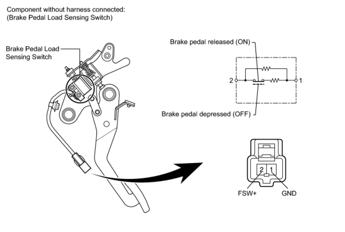 (d) If the value is not as specified, replace the brake pedal load sensing switch.