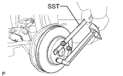(a) Using SST to hold the disc, tighten the disc with the 5 hub nuts.