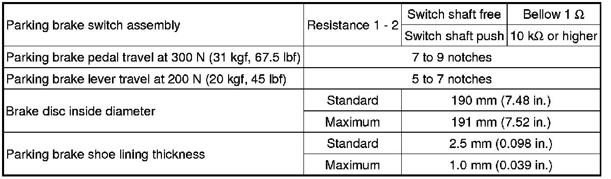 SERVICE SPECIFICATIONS: PARKING BRAKE: SERVICE DATA