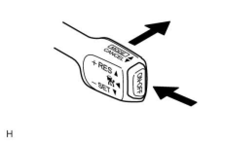 (b) Check the cruise control main switch using the DATA LIST function in the Techstream (ON-OFF, CANCEL, - (COAST)/SET, + (ACCEL)/RES (RESUME), and MODE).