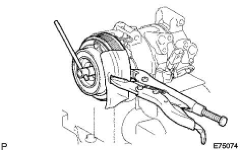(d) Using a snap ring expander, remove the snap ring and magnetic clutch rotor.