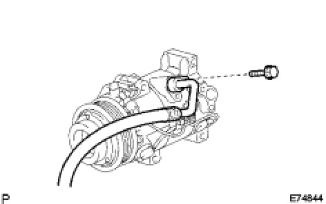 (a) Remove the bolt and disconnect the discharge hose from the compressor.