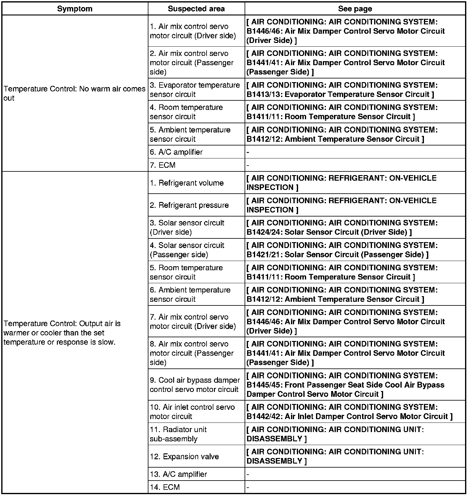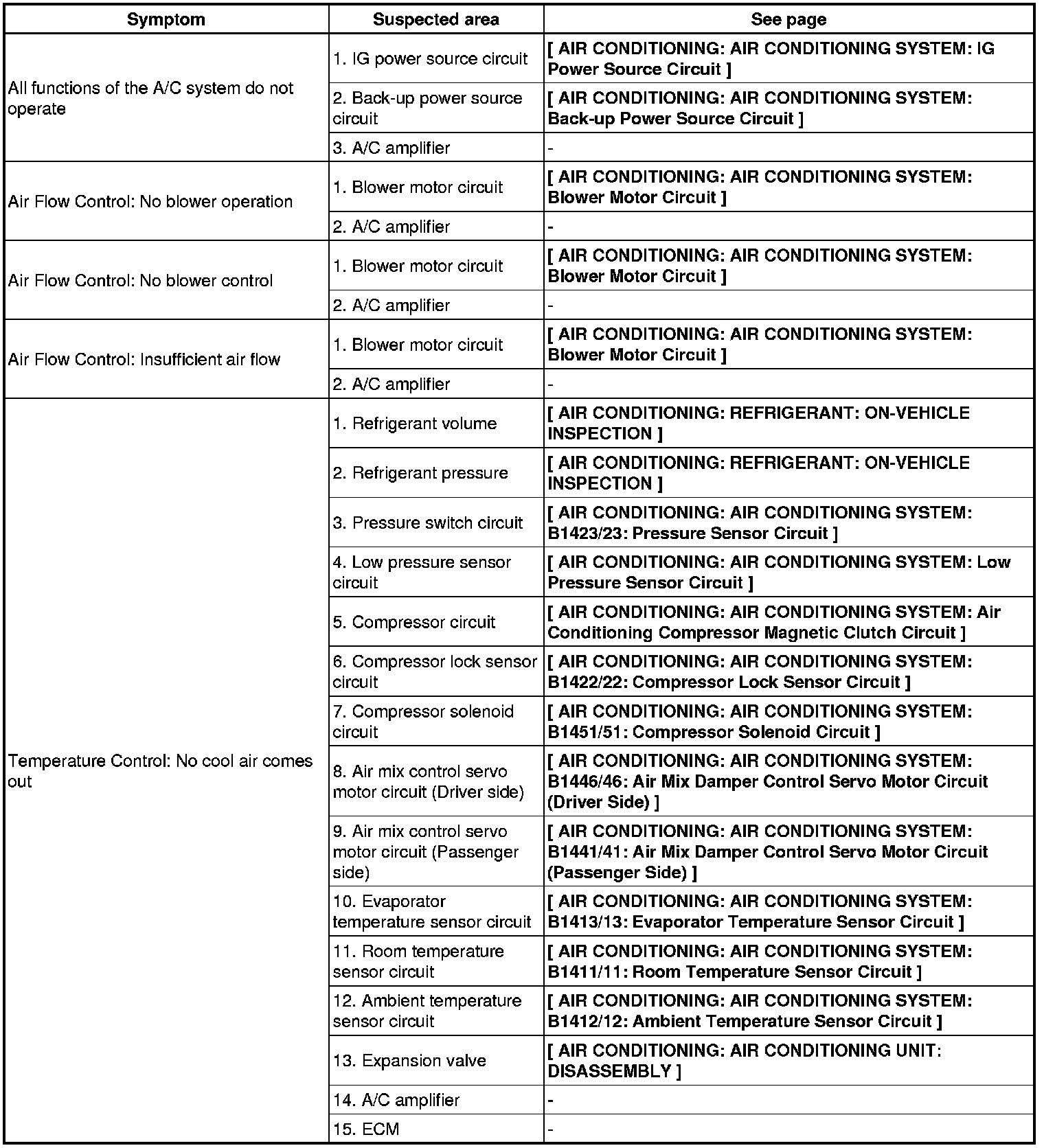 AIR CONDITIONING: AIR CONDITIONING SYSTEM: PROBLEM SYMPTOMS TABLE